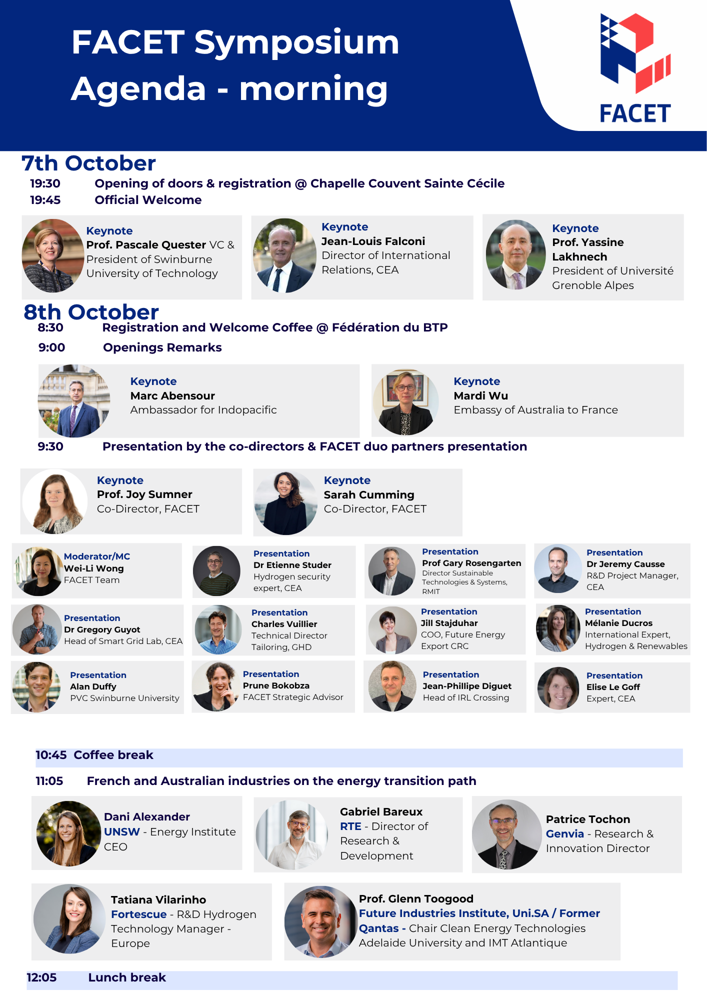 FACET Symposium is indeed a unique opportunity to connect with global peers, share expertise and shape the future of energy transition. It is dedicated to highlevel and impactful collaboration, fostering lasting partnerships and leading to joint initiatives.